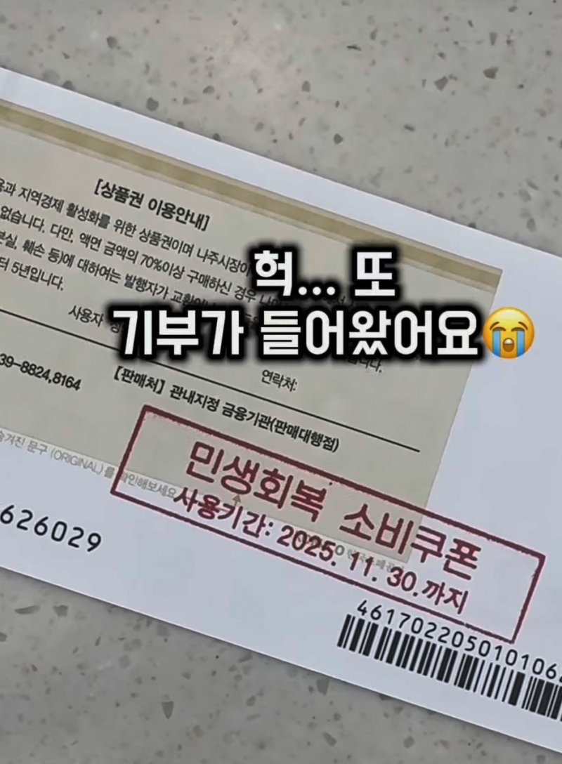 이달 초에는 가게를 찾아온 한 중년 손님이 이 씨에게 상품권식 소비쿠폰을 주며 대리 기부를 부탁했다.