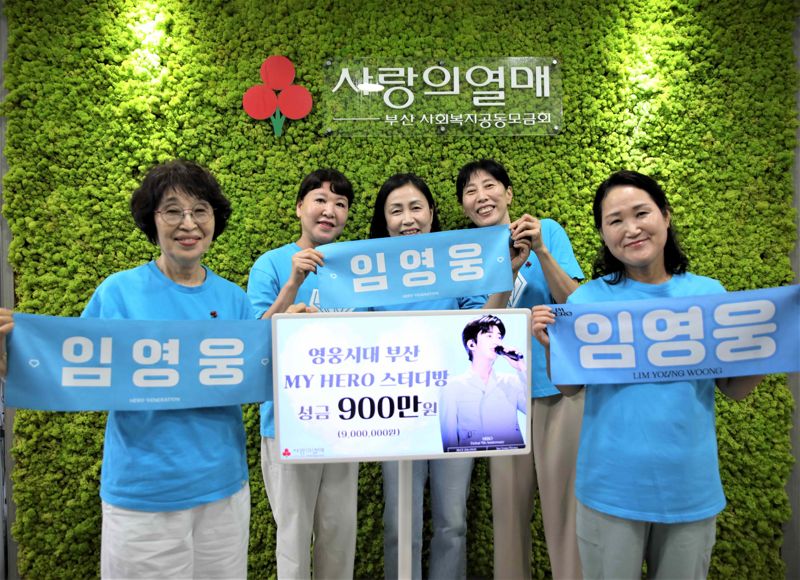 [파이낸셜뉴스] 부산사랑의열매는 가수 임영웅 팬클럽 ‘영웅시대 부산 마이 히어로(MY HERO) 스터디방’이 임영웅 데뷔 9주년을 맞아 지난 6일 이웃돕기성금 900만원을 전달했다고 7일 밝혔다.