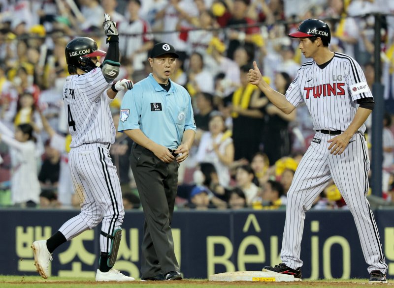 이어 타석에 들어선 신민재는 곽빈의 4구째 시속 123㎞를 잡아당겨 2루수 옆을 빠져나가는 적시 2루타를 터뜨렸다. 이 한 방으로 선행 주자 3명이 모두 홈에 도달하며 LG는 3-1 역전에 성공했다.