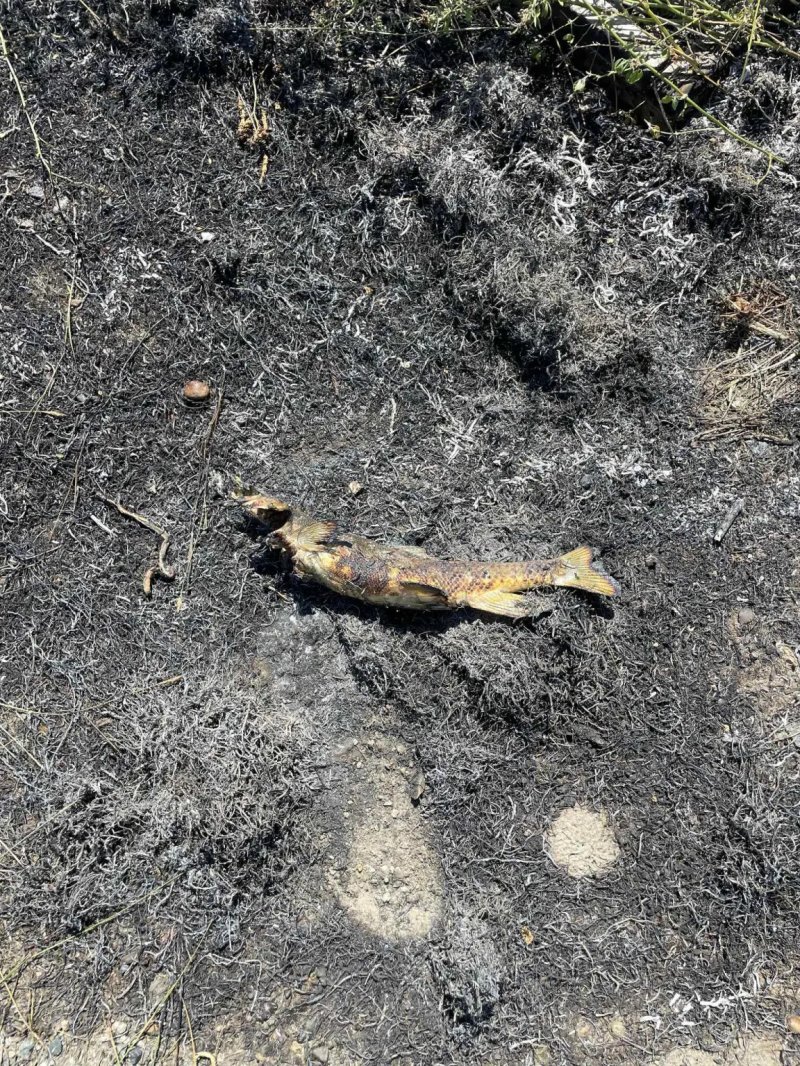 소셜네트워크서비스(SNS)에는 시커멓게 탄 물고기가 화재 현장에 놓인 사진이 공유됐다.