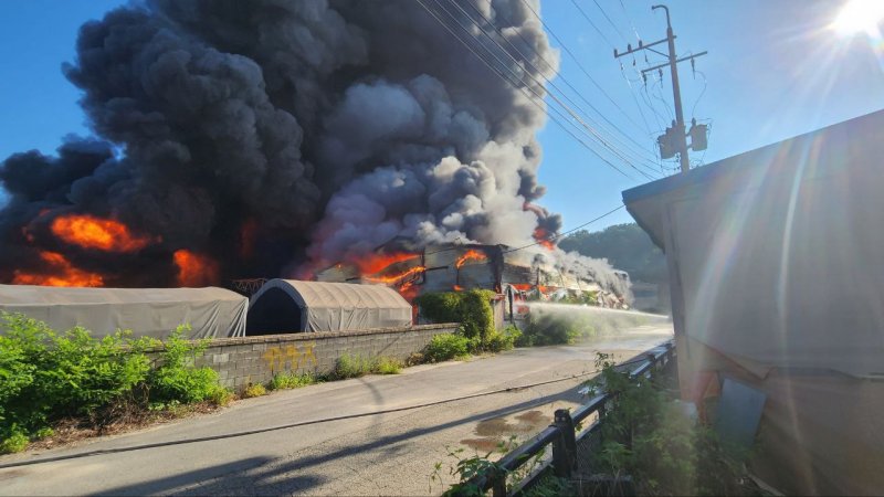 이 불은 옆 건물로 확산해 철골 구조로 돼 있는 공장 건물 5개 동이 피해를 본 것으로 전해졌다.
