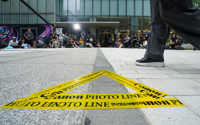 (서울=뉴스1) 이승환 기자 = 포토라인은 기자들이 취재 현장에서 만드는 '통제선'이다. 본래 취지는 취재진이 몰릴 경우 사고가 발생할 수 있어 질서와 안전을 유지하겠다는 것이다.