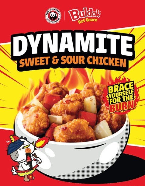 이번 협업을 통해 출시된 신메뉴 '다이너마이트 스위트 앤 사워 치킨'(Dynamite Sweet & Sour Chicken)은 바삭하게 튀긴 양념치킨에 붉은 피망과 양파를 더해 웍에서 볶고 여기에 불닭 특제 소스로 마무리한 메뉴다. 그동안 판다 익스프레스에서 선보인 요리 중 가장 매운 요리로 평가받고 있다.