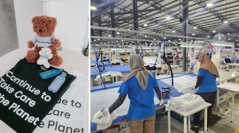세아상역은 세이브더칠드런에서 지난 2022년 8월부터 자카르타 내 89개 지역 공공시설에 설치한 폐페트병 수거함에서 모은 폐플라스틱을 활용했다. 환경재단과 협력해 약 702kg 폐플라스틱을 재생 원사로 가공하고 티셔츠와 곰인형으로 재탄생시켰다.