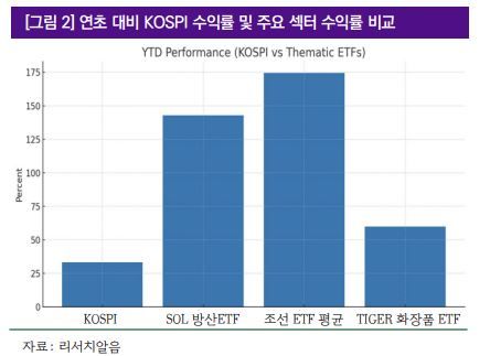 그러면서 “올해 들어 KOSPI 는 조선·방산·화장품 등 일부 수출주 섹터와 금융·지주사 등 밸류업 정책 수혜 섹터의 강세에 힘입어 30% 이상 상승했지만, 지수 비중이 큰 IT·자동차·철강 등의 업종은 여전히 실적 회복세가 제한적”이라며 “특히 2분기 실적은 아직 발표가 진행 중이어서 전체적인 이익 모멘텀을 단정하기 어렵지만, 주요 업종별 전망은 여전히 보수적”이라고 부연했다.