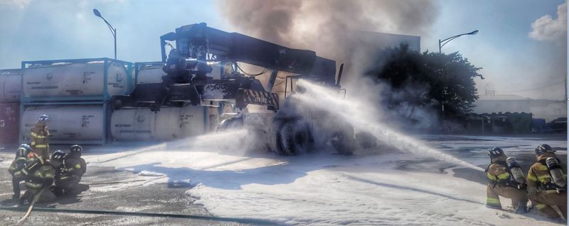 컨테이너 상하차용 지게차 1대 전소돼
