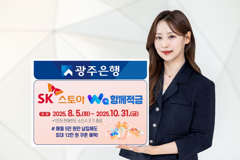 【파이낸셜뉴스 광주=황태종 기자】광주은행은 SK스토아와 제휴를 통해 6개월간 적금만 들어도 최대 12만원 상당의 쿠폰을 받을 수 있는 '[SK스토아]Wa함께적금'을 오는 10월 31일까지 1만좌 한정 판매한다고 밝혔다.