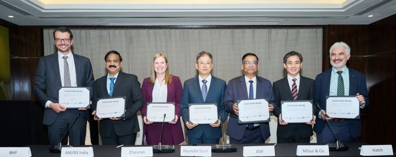 현대제철은 지난 7일(현지시간) 싱가포르에서 호주 BHP, 쉐브론, 일본 미쓰이상사, 인도 JSW스틸, AM/NS 인디아(아르셀로미탈·일본제철 합작사) 등 5개사와 컨소시엄을 구성해 'CCUS 허브스터디' 공동 연구 협약을 체결했다고 11일 밝혔다.