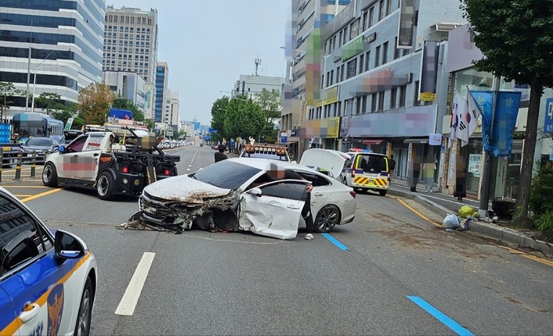 (대전=연합뉴스) 강수환 기자 = 11일 오전 9시 29분께 대전 중구 오류동 왕복 6차로를 달리던 승용차가 앞서가던 차를 추돌한 뒤 반대차선으로 넘어가 마주 오던 스포츠유틸리티차(SUV)를 들이받았다.