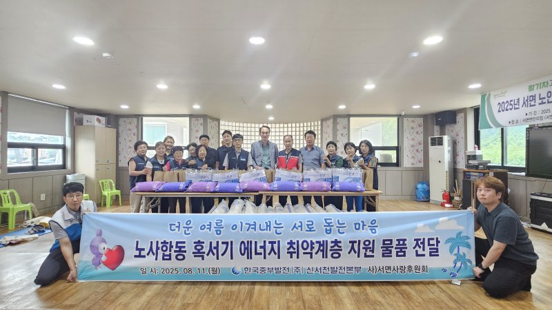 [서천=뉴시스]곽상훈 기자 = 중부발전(주) 신서천발전본부는 11일 서면 주민자치센터에서 발전소 주변 지역 에너지 취약계층에게 혹서기 극복 물품 전달식을 가졌다고 밝혔다.