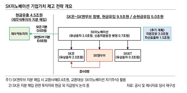 SK온(SK이노베이션 지분율 87%)이 합병신주를 발행해 SK이노베이션의 100% 종속회사인 SK엔무브를 흡수합병하는 방식이다. 합병기일은 오는 11월 1일이다.