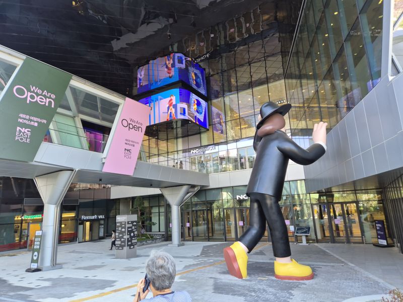 12일 서울 광진구 자양동 '이스트폴' 내 복합쇼핑몰인 NC이스트폴에서 만난 배송로봇은 시설 내 입점해 있는 한 편의점에서 시원한 생수를 가져다줬다. 이스트폴을 개발해 운영 중인 KT에스테이트 관계자는 "개발 단계에서부터 상업시설과 주거시설을 유기적으로 연결할 수 있는 기능을 구상해 로봇친화형 단지를 구성했다"고 설명했다.