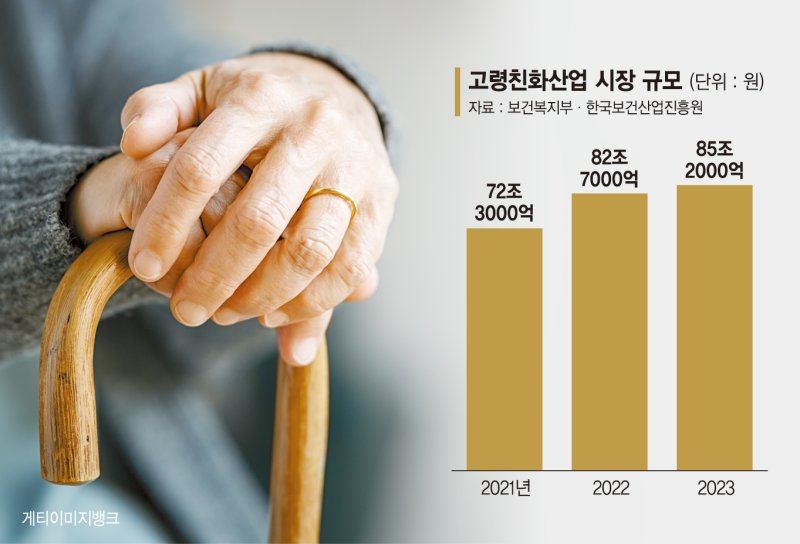 12일 한국보건산업진흥원에 따르면 우리나라의 고령친화산업(고령자의 건강·생활·안전·여가를 지원하는 제품·서비스) 시장 규모는 2023년 기준 85조2000억원에 이른다.