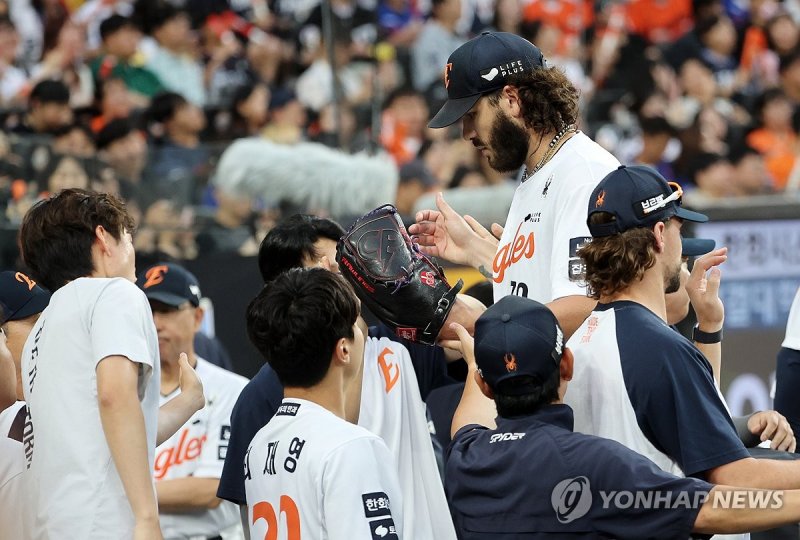 유강남을 1루에 내보낸 뒤에도 폰세는 흔들리지 않고 손호영을 삼진으로 처리, 이날 경기 5번째 삼진을 솎았다.