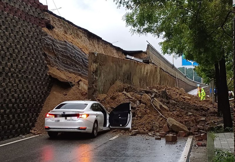앞서 지난 7월16일 오후 7시4분께 가장교차로 옹벽이 도로로 무너지면서 주행하던 차량을 덮치는 사고가 났다. 이 사고로 매몰된 차량 운전자 A(40대)씨가 숨졌다.