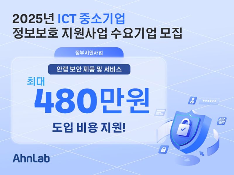 [파이낸셜뉴스] 안랩은 ‘2025년 정보통신기술(ICT) 중소기업 정보보호 지원사업’의 공급기업으로 선정됐다고 13일 밝혔다. 이에 안랩은 자사 보안 제품과 서비스를 도입할 수요 기업을 모집한다.