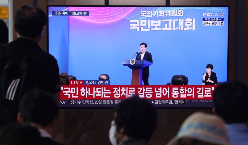 대통령 직속 국정기획위원회(국정위)는 13일 청와대 영빈관에서 국민보고대회를 개최하고, 이재명정부의 국정 청사진인 '국정운영 5개년 계획(안)'을 발표했다.