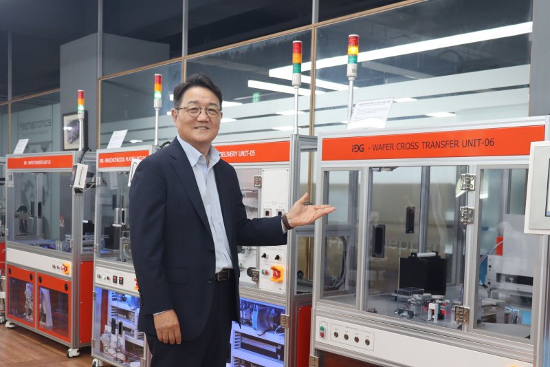 #. 경기 성남시 중원구 아이지 본사. 반도체 공정 모듈과 로봇, 센서가 촘촘히 연결된 '미니 공장'이 돌아가고 옆 라인에선 빨간색 헤드가 분주히 라벨을 뽑아 붙인다. 최근 '2025년 제3차 이노비즈 PR-day' 현장에서 스마트팩토리 기반 직업훈련 장비 국내 점유율 1위 기업 아이지는 이처럼 자사 주력 제품군을 한자리에 묶어 선보였다.
