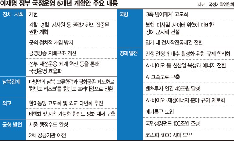 국정기획위원회가 13일 발표한 '이재명 정부 국정운영 5개년 계획'의 핵심은 5년간 재정 추가 부담 없이 210조원을 투입해 잠재성장률 3%를 달성하겠다는 목표다.