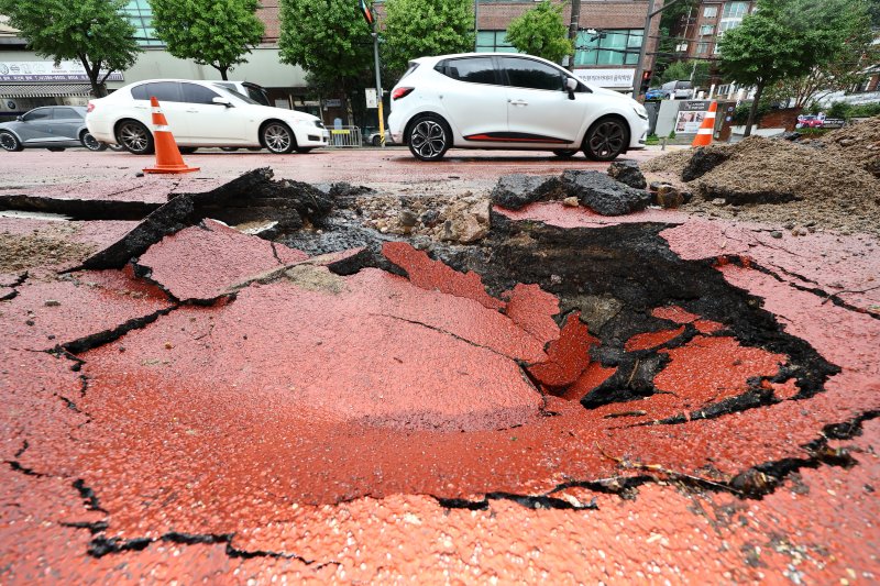 종로구는 이날 오전부터 폭우가 쏟아지면서 하수관이 역류해 포트홀이 발생한 것으로 파악하고 있다.