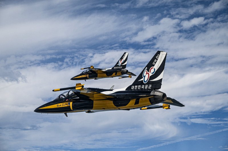 [파이낸셜뉴스] 공군은 특수비행팀 블랙이글스 T-50B 항공기에 광복 80년 기념 엠블럼을 부착했다.