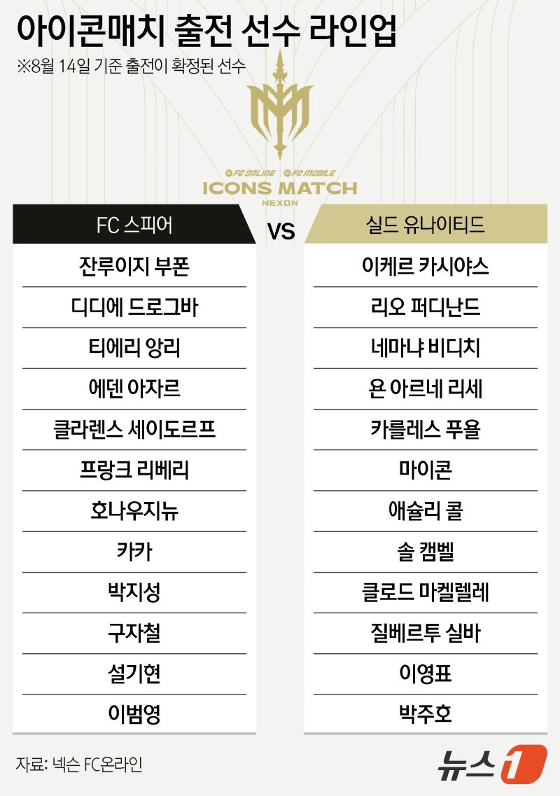 '2025 아이콘매치'는 오는 9월 13일과 14일 서울월드컵경기장에서 개최되며 올해는 지난해 패배한 'FC 스피어(창팀)'이 '실드 유나이티드(방패팀)'에게 재대결을 신청하는 콘셉트로 기획됐다.