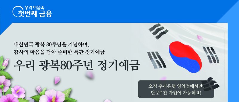 우리은행 관계자는 “우리은행의 126년 역사에는 일제강점기라는 암울한 시대를 관통하며 금융독립의 꿈을 포기하지 않았던 발자취가 담겨있다”며 “광복 80주년을 기념하고 고객에게 감사의 마음을 전하고자 특판 정기예금을 마련했다”고 말했다.