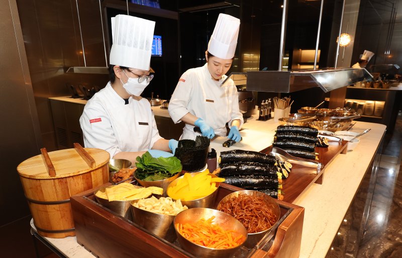 양식 코너에서는 피자와 크루아상을 직접 만들고 오븐에 구워내고, 셰프가 직접 커팅해 주는 소고기 스테이크를 맛볼 수 있다. 한식 코너에서는 국산 농산물을 사용한 음식과 떡국, 잔치국수 등을 맛볼 수 있다.