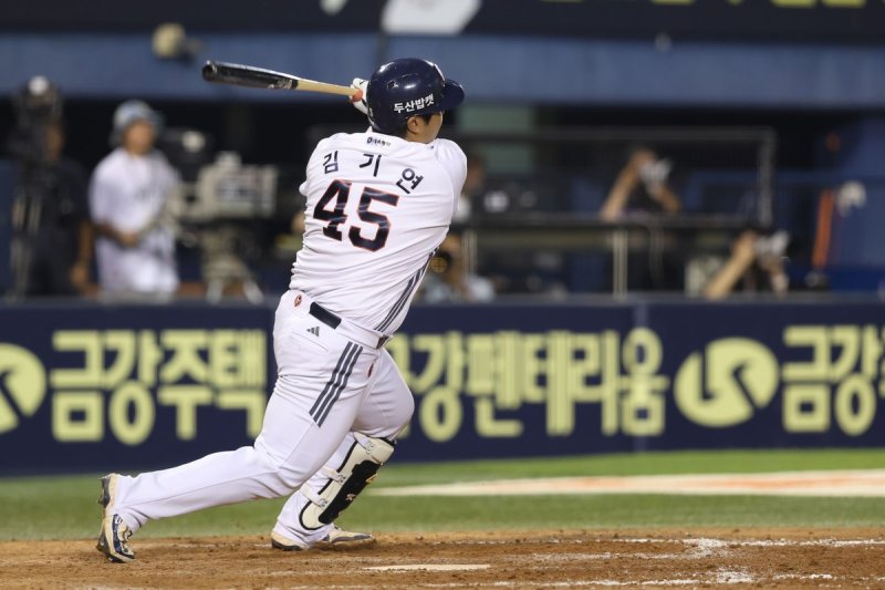 8회말 선두 타자 양의지의 몸에 맞는 공, 박준순의 좌전 적시타, 오명진의 희생 번트로 1사 2, 3루 기회를 잡았고, 대타 김기연이 유격수를 맞고 좌익수 앞으로 향하는 동점 적시타를 쳤다.