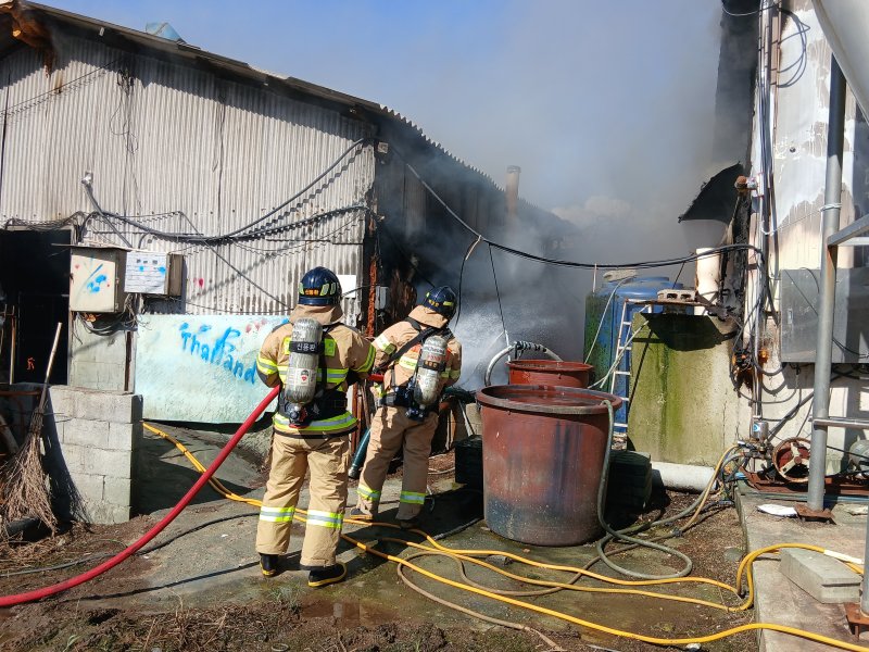 [정읍=뉴시스]강경호 기자 = 4일 오후 3시41분께 전북 정읍시 덕천면의 한 돈사에서 불이 나 35분여만에 진화됐다.