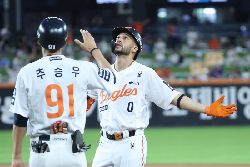 (서울=뉴스1) 이상철 기자 = 프로야구 2위 한화 이글스가 대전 3연전에서 승리를 싹쓸이하고 선두 LG 트윈스를 1경기 차로 추격했다.