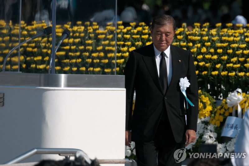 이시바 총리는 이날 패전 80년을 맞아 도쿄 일본 무도관에서 열린 '전국 전몰자 추도식' 식사(式辭)에서 "전쟁의 참화를 결단코 되풀이하지 않겠다"며 "그 전쟁의 반성과 교훈을 이제 다시 가슴 깊이 새겨야 한다"고 말했다.