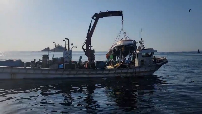 해경은 또 정치망 어선 크레인을 이용해 A호를 물 밖으로 인양했다.