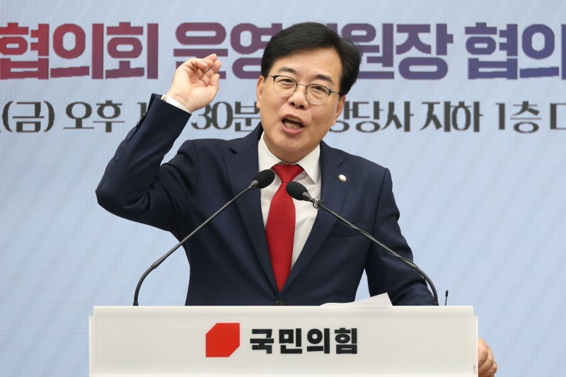 송언석 위원장은 이날 오후 국민의힘 중앙당사에서 열린 원외당원협의회 운영위원장 협의회 출범식 및 당대표 후보자 초청 정책협약식에서 "아까 (광복절 경축식에서) 정청래 대표가 내 옆에 앉았다. 쳐다보지도 않더라"라며 이같이 말했다.