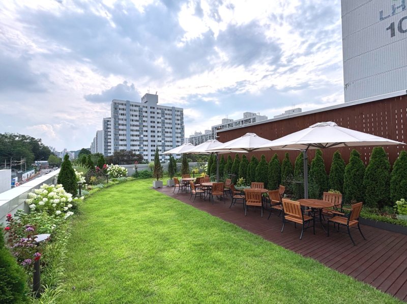 노원구 월계도서관은 240㎡ 면적에 수국, 배롱나무 등을 심고 테이블, 벤치, 파라솔을 설치했다.