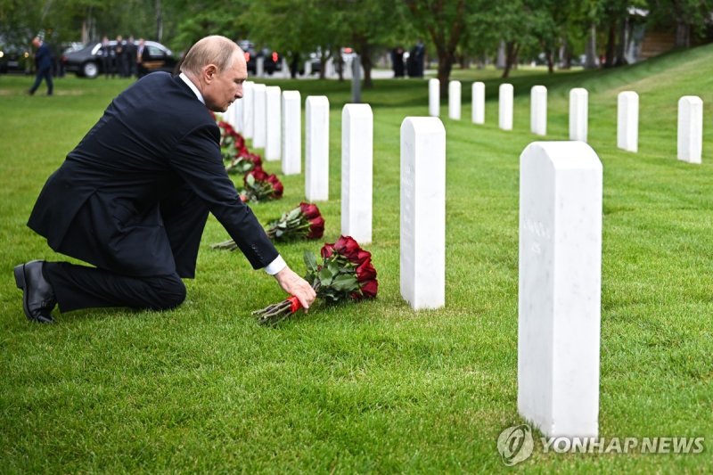 이날 CNN 등에 따르면 푸틴 대통령은 정상회담 장소인 엘먼도프-리처드슨 기지에서 트럼프 대통령과 약 3시간동안 정상회담을 하고 기자회견을 한 뒤 곧바로 인근에 있는 포트 리처드슨 기념 묘지로 이동했다.