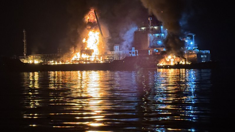 16일 여수해양경찰서에 따르면 이날 오전 1시 4분쯤 여수시 신북항 해상에서 2692톤급 석유제품운반선 A 호와 24톤급 용달선 B 호에서 화재가 잇따랐다.