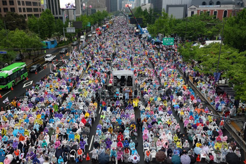 전광훈 사랑제일교회 목사를 중심으로 한 보수 성향 자유통일당은 이날 오전부터 서울 종로구 광화문광장에서 전국 집중 국민대회를 열고 이재명 대통령 타도를 외쳤다.