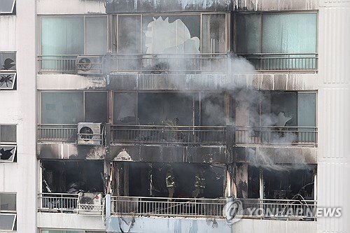 소방은 화재가 발생한 14층에는 스프링클러가 설치돼 있지 않았다고 밝혔다. 화재 피해를 키운 원인으로 추정되는 대목이다.