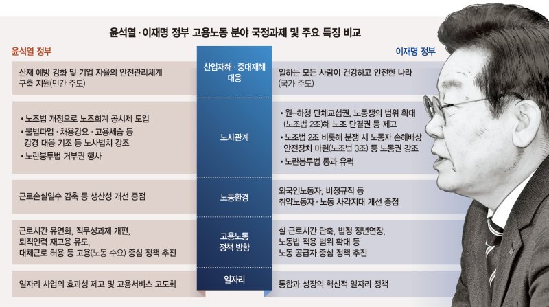 윤석열 정부와 달리 이재명 정부는 노동권 제고와 산업재해 근절·처벌을 최우선 가치로 내세우고 있다. 하청·비정규직 등의 열악하고 위험한 근무환경을 개선해 일자리 패러다임을 전환해야 한다는 인식이다.