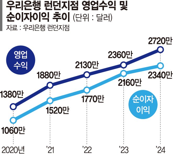 [파이낸셜뉴스 런던(영국)=박소현 기자] 우리은행 런던지점이 '6년 무연체(연체율 0)'를 앞세워 안정적이고 균형적인 성장을 지속하고 있다. 특히 시중은행 런던지점 가운데 지난해 영업수익 1위에 오르며 '내실 경영'의 성과를 톡톡히 냈다.