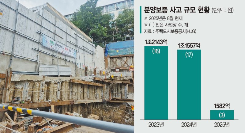 17일 주택도시보증공사(HUG)에 따르면 올 들어 현재까지 분양보증 사고는 3개 사업장(사고금액 1582억원)에 불과한 것으로 나타났다. 월별로 보면 2월 1건, 5월 2건 등이다.