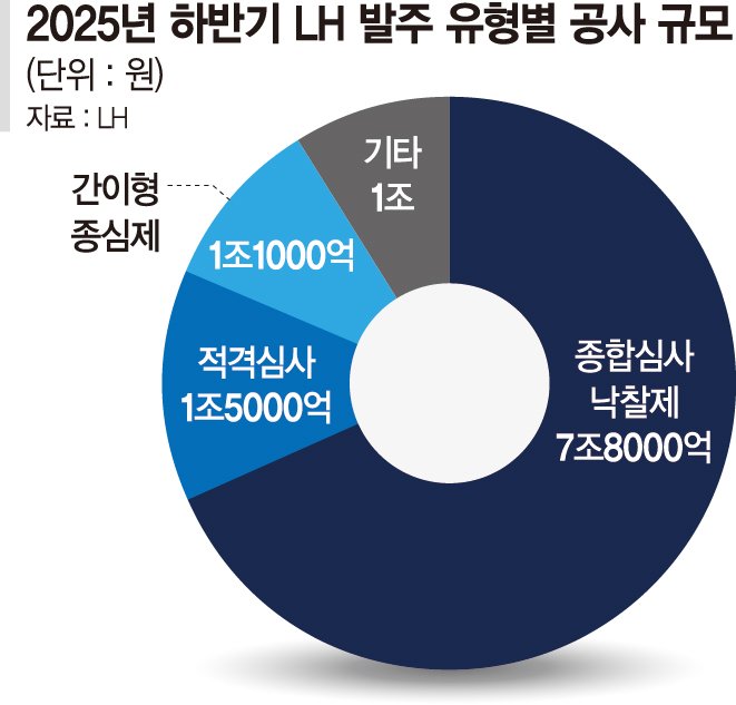 하반기 발주액 중 8조원가량(약 70%)은 공공주택 건설공사 분야에 집중된다. LH는 "주택공급 확대를 통한 부동산 시장 안정과 민간 건설경기 활성화를 위해 발주 시기를 앞당겼다"며 "9월까지 전체 물량의 73%인 8조3000억원을 집행할 방침"이라고 설명했다.