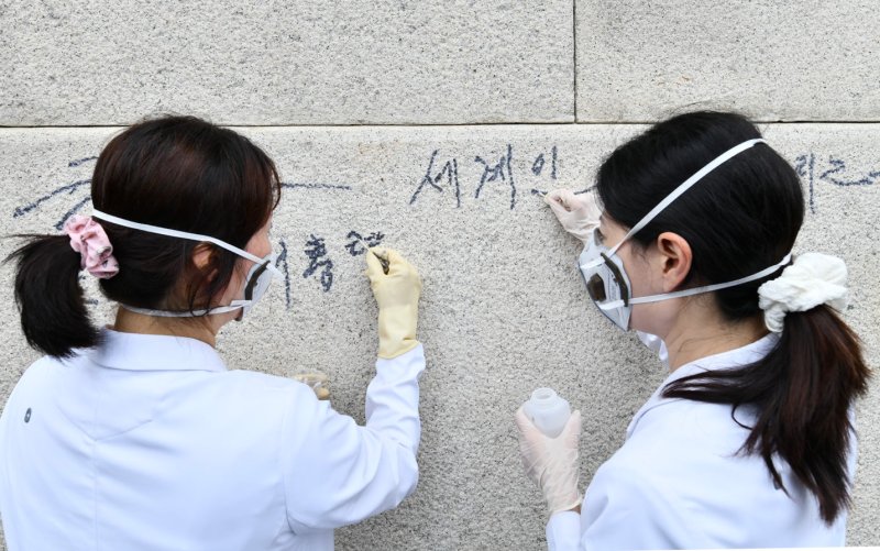 17일 법조계 등에 따르면 경찰은 서울 종로구 경복궁 광화문 석축에 유성 매직을 이용해 '국민과 세계인에게 드리는 글, 트럼프 대통령'이라고 낙서한 혐의로 A씨(79)를 지난 11일 검거했다.