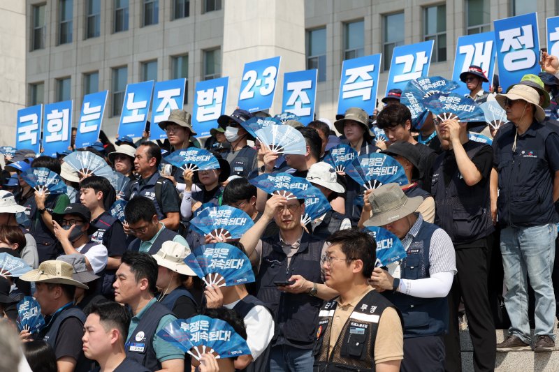 [서울=뉴시스] 고홍주 기자 = 이른바 '노란봉투법'으로 불리는 노동조합법 2·3조 개정안이 이르면 오는 21일 국회 본회의 문턱을 넘을 것으로 보인다. 노사는 법안 처리를 앞두고 치열한 여론전을 펼치고 있다.