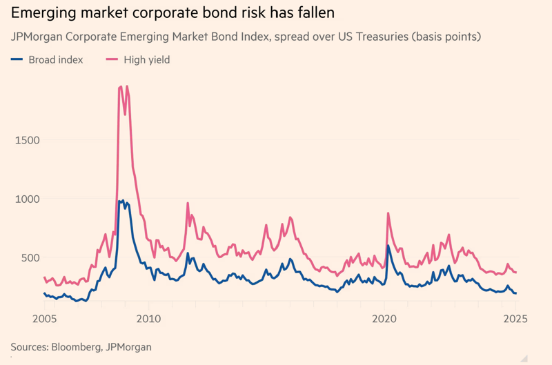 도널드 트럼프 미 행정부의 관세 전쟁이 글로벌 경제에 미치는 영향이 예상보다 적을 것이라는 전망과 미 금리인하에 대한 기대감도 신흥국 기업 및 은행들의 채권 발행을 부추기고 있다.