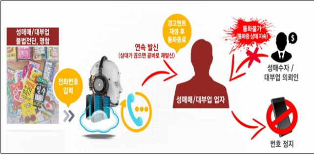 가령 자동발신이 작동되는 동안은 청소년 또는 성매수자, 불법 대부의뢰인은 해당 전화번호로 통화중인 상태가 지속돼 통화가 안된다.