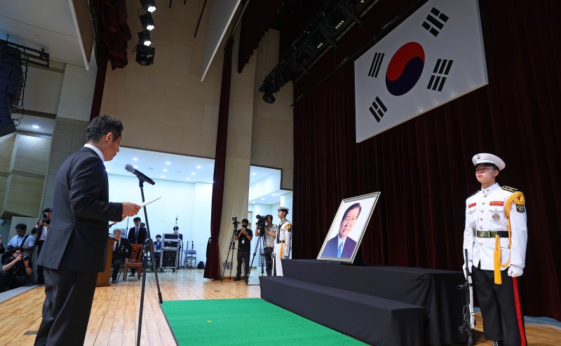 정 대표는 이날 국립서울현충원 현충관에서 열린 김 전 대통령 추모식에서 "대통령님께서 우리 곁을 떠나신 지 벌써 16년, 그러나 고난 속에 피어난 인동초같이 당신의 정신은 여전히 이 땅에 살아 숨 쉬고 있다"며 이같이 말했다.