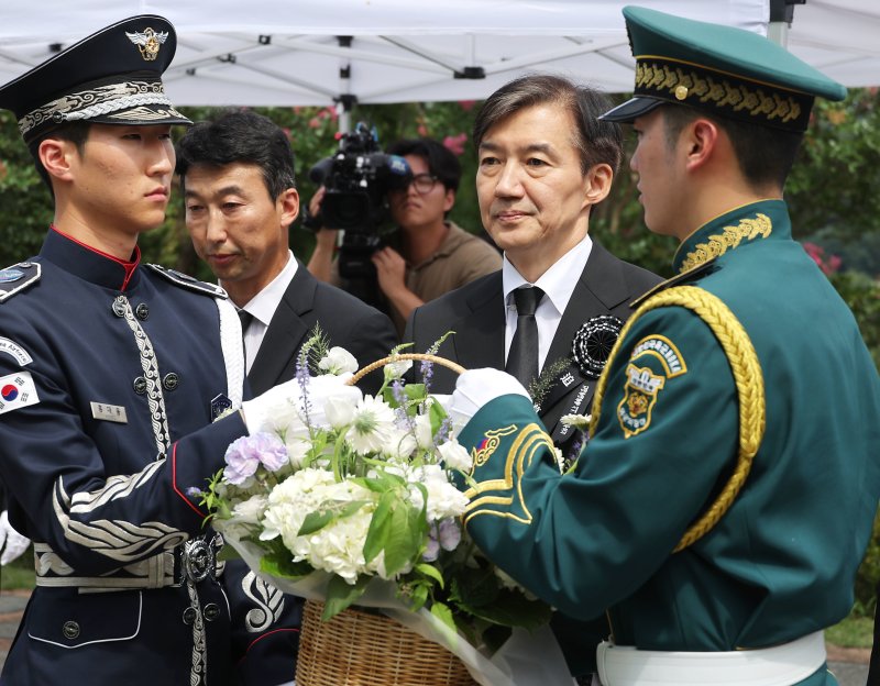 조 전 대표는 김대중 전 대통령 16주기인 이날 서울 국립서울현충원에서 묘역 참배를 마친 뒤 기자들 만나 "여론조사 전문가는 아니나 (전문가가) 쓴 글이나 말을 들어보면 이번에 지지율 떨어진 게 제 사면도 영향이 있었겠지만, 그 외 여러 다른 사건들이 있었다"며 이같이 밝혔다.