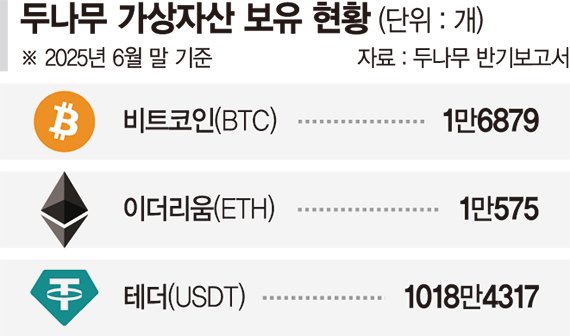 업계 관계자는 "최근 스트래티지와 비트마인 등이 비트코인과 이더리움 등 가상자산을 기업 자산으로 대량 보유하는 전략이 주목받고 있다"면서 "국내에서는 두나무가 업비트를 운영하면서 거래 수수료 등으로 축적한 가상자산을 활용해 포트폴리오 다각화 전략을 구사하고 있다"고 말했다.